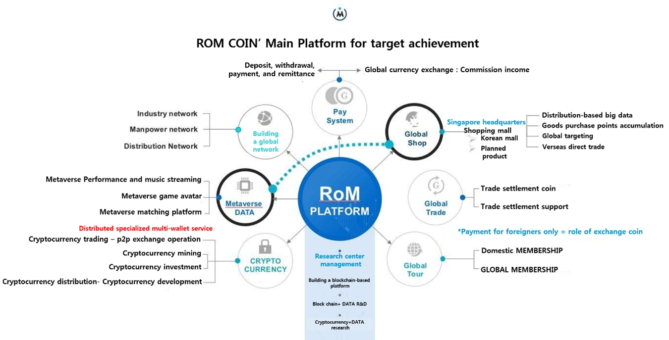 The modern world is an era where the real world, virtual world, and metaverse environment coexist. The research and development activities will be pursued to ensure that ‘ROM_COIN’ platform can be operated in an economic environment that connects the real and virtual environments and that 'ROM_COIN' can be used as a payment method in this economic environment.