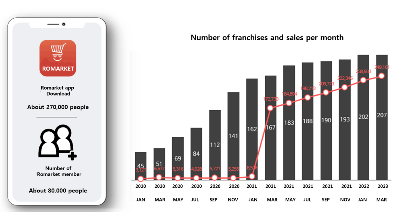 The number of franchise stores on ROMARKET is steadily growing, and the sales from ROMARKET are also increasing continuously, making the best record in the second half of 2022. ROMARKET has successfully entered the market based on favorable reviews from customers, leading to the growth of the company and stable profitability.